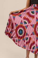 Pleated Midi Skirt - Purple Star Quilt Motif