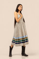 A corset bodice tops a charming fit-and-flare dress, crafted from soft vintage inspired ditsy cotton with ribbon accents on the skirt.