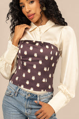 Elk Ivory Satin Corset Top - Fig