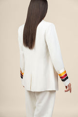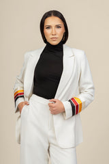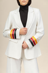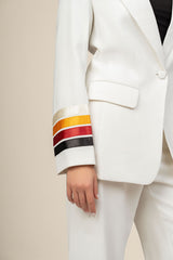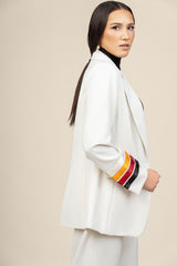 Make a statement with its ribbon cuff detail. This "I can do-anything" blazer can be dressed up with our matching Ribbon Pants or paired with your favorite jeans for a casual yet polished look.